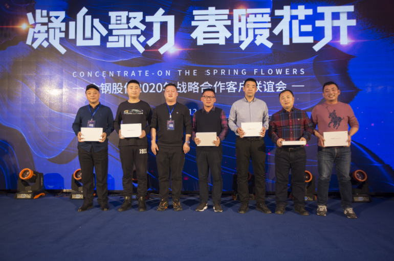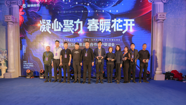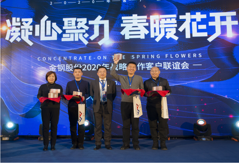 公司邀請48戶核心戰略合作伙伴共計180余人參加了會議。會上,公司黨委書記、董事長沈江山首先致歡迎詞;隨后部分客戶代表發表會議致辭(廣州廣鋼新材料公司、上海金通物產公司、黑龍江現代紅嘴鋼鐵經銷公司、遼寧固存興鋼鐵供應鏈管理公司、瓦房店軸承股份公司、遼寧方大國際貿易公司),我的鋼鐵網資深分析師甘遐勇先生做了《2020年國內鋼礦市場回顧及2021年行業發展展望》專題報告;銷售處長、供應處長宣布了2020年金牌分銷商、金牌供應商評選結果并主持頒獎。最后,公司總經理蔣俊對金鋼股份2020年工作進行了簡要總結,對2020年品牌建設、市場開發、經營業績進行了全面盤點,對2021年經營目標、計劃安排、市場布局、營銷重點進行了重點介紹,并對下一步客戶合作提出了新的目標和期望。會后進行了答謝酒會。